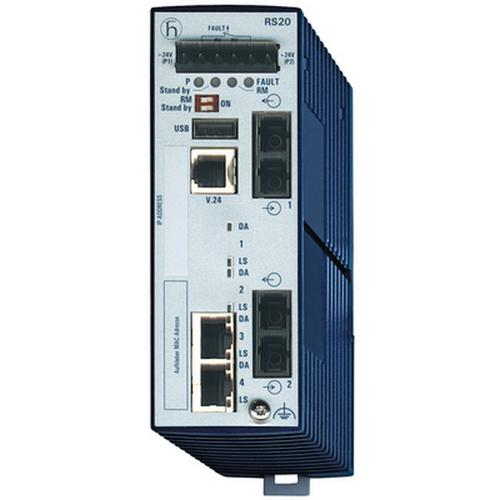 Hirschmann 943434003 RS20-0800M2M2SDAE Managed Switch with 6 RJ45 Fast Copper ports and 2 Fiberoptic Multimode SC uplink ports . Operating Voltage of 9.6-60 VDC & 18-30 VAC. Software Layer 2 Enhanced and fanless design with Enhanced management. DIN rail mount. Operating Temperature of 32F-140F. Approvals CE, cUL508, ISA12.12.01, Class 1 Div 2.