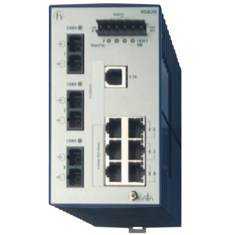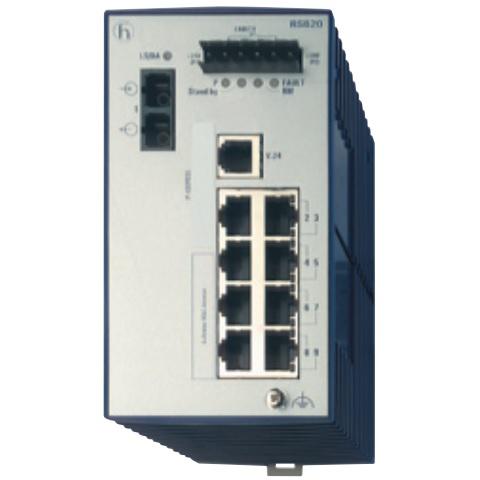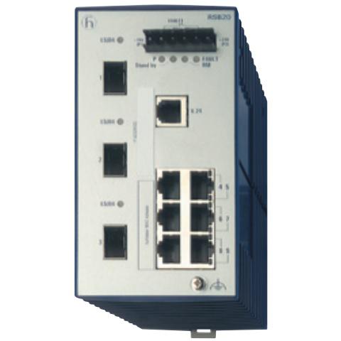 Hirschmann 942014003 RSB20-0800S2S2SAAB Managed Switch with 6 RJ45 Fast Copper ports and 2 Fiberoptic Single mode SC port (with 2 fiber ports are uplink ports). Operating Voltage of 9.6-60 VDC & 18-30 VAC. Software Layer 2 Basic and fanless design with Basic management. DIN rail mount. Operating Temperature of 32F-140F. Approvals CE, cUL508, ISA12.12.01, Class 1 Div 2.