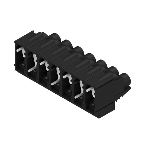 This PCB terminal with proven clamping yoke connection with 10.16 mm pitch and 90° conductor outlet direction offers the following features: 1000 V, offset solder pins, test point, 76 A and 16 mm² wire cross-section.