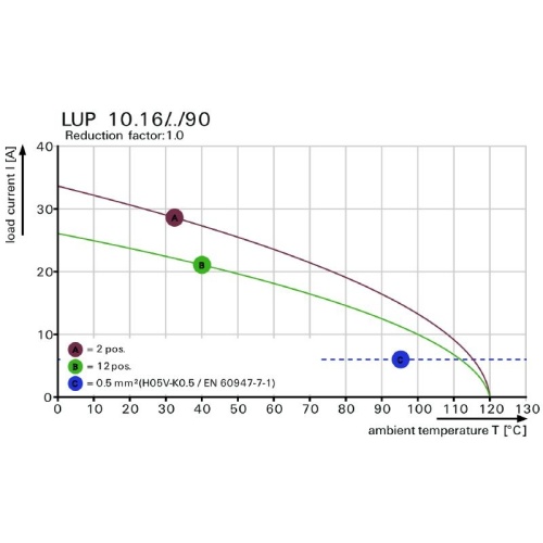 This PCB terminal provides connections for 1000 V, test point, 76 A and 16 mm² conductor cross-section with proven clamping yoke connection at 10.16 mm pitch, conductor outlet direction in 90° design.