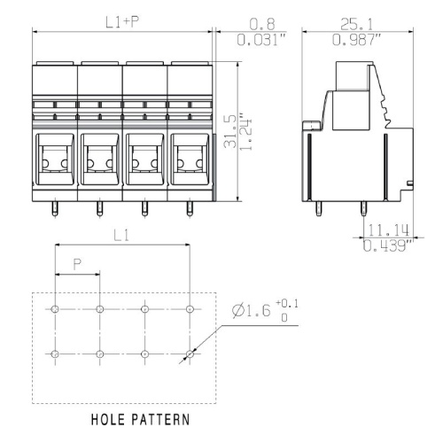 This PCB terminal provides connections for 1000 V, test point, 76 A and 16 mm² conductor cross-section with proven clamping yoke connection at 10.16 mm pitch, conductor outlet direction in 90° design.