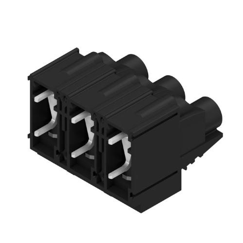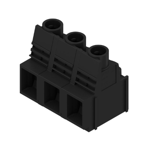 This PCB terminal provides connections for 1000 V, 76 A and 16 mm² conductor cross-section with proven clamping yoke connection at 12.7 mm pitch, conductor outlet direction in 90° design.