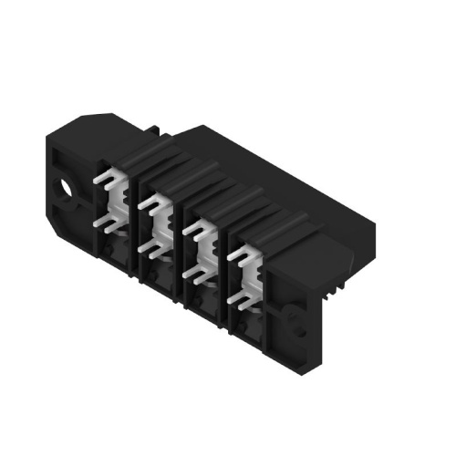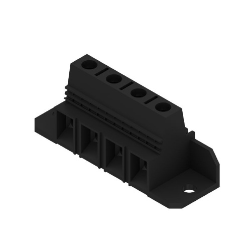 Fitted with flange for accommodating forces and fixing to PCB. 101 A, 1000 V and 25 mm² conductor cross-section are possible with this PCB terminal.