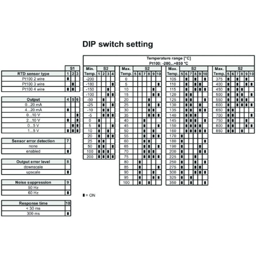 Temperature converter, With galvanic isolation, Input : Temperature, PT100, Output : I / U