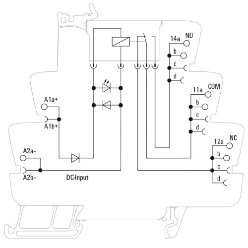 1 CO contact Contact material: AgNi Unique multi-voltage input from 24 to 230 V UC Input voltages from 5 V DC to 230 V UC with coloured marking: AC: red, DC: blue, UC: white