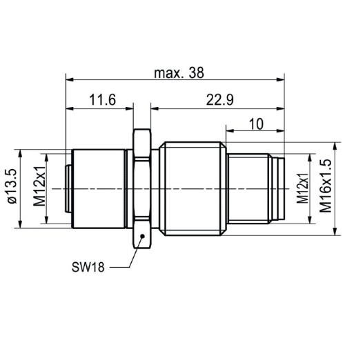 Panel feed-through, Number of poles: 8, Coding: A-coded, M12, 30 V