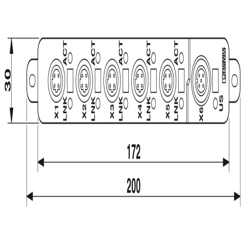 Phoenix Contact 2700200 Unmanaged Wall Mount Ethernet Switch (Extended Temperature) FL SWITCH 1605 M12 with 5 M12 Fast (100 Mbps) Copper Ports. Wall mount. Plastic housing with IP67 protection. 30 mm x 200 mm x 41 mm (HxWxD)
