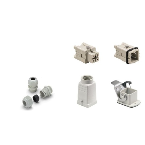 The HDC kits normally consist of a male insert, a female insert, a plug housing, a bulkhead housing and a cable gland.