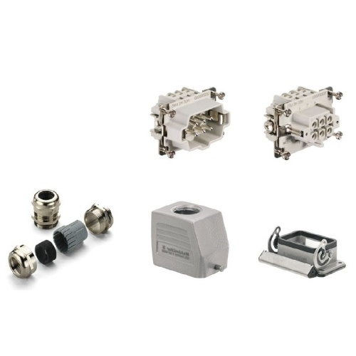 The HDC kits normally consist of a male insert, a female insert, a plug housing, a bulkhead housing and a cable gland.