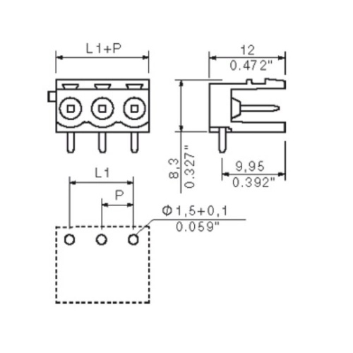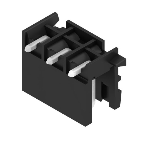 PCB plug-in connector, male header, open side, THT/THR solder connection, 5.08 mm, Number of poles: 3, 90°, Solder pin length (l): 1.5 mm, tinned, black, Tape