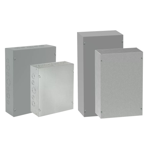 nVent Hoffman ASG36X36X12NK Enclosure Steel Pull Box 36 x 36 x 12 inch (HxWxD) Type 1 Galvanized Steel Pull Box with Flat, removable covers fastened with plated steel screws. No knockouts. (DOES NOT INCLUDE BACK PANEL)