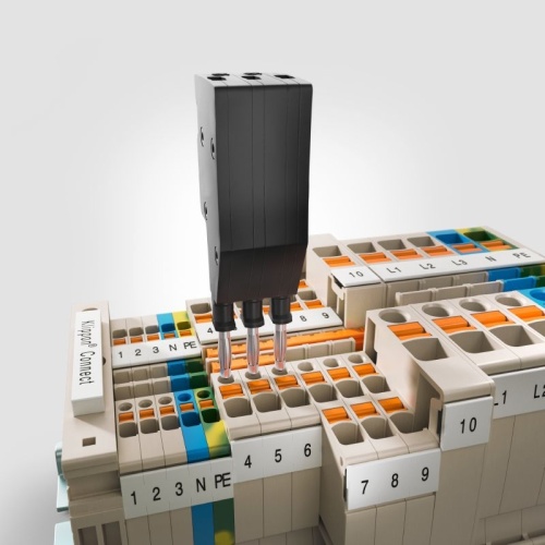 Test adapters and test plugs are used for the electrical connection between terminal blocks and the test equipment.