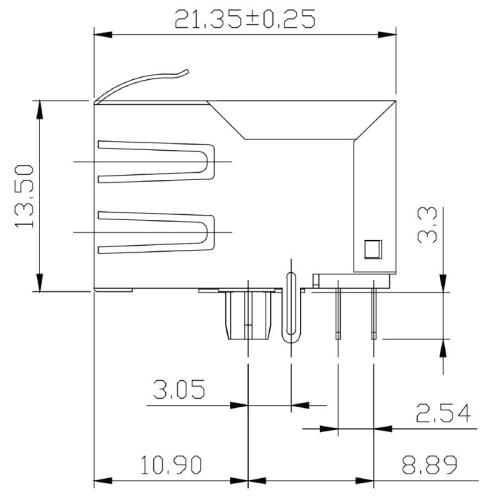 The product range encompasses the following designs: • 90°, lying (horizontal) and 180°, standing (vertical) • latch up / latch down • THT, THR or SMD soldering processes • Wide range of different design types, also with integrated LEDs and shield contact tabs • Transmission rates of up to 1 Gbps • Packed either in a tray (TY) or on a roll (tape-on-reel, RL) • Compatible with modular RJ45 connector according to ANSI / TIA-1096-A and IEC 60603 • Dielectric strength ≥1500 V AC RMS (2250 V AC peak value) according to IEEE 802.3 • Dielectric strength ≥1500 V AC (peak value) or ≥1500 V DC according to IEC 60603 • Compliance with IEEE 802.3 requirements (1000Base-T, 1 Gbps, IEEE 802.3ab or 100Base-Tx, 100 Mbps, IEEE 802.3u) Properties and advantages: • Extended temperature range of –40 °C to +85 °C for maximum performance • Reinforced gold layer (30µ") for improved corrosion protection • At least 0.3mm stand-off ensures a perfect soldering result