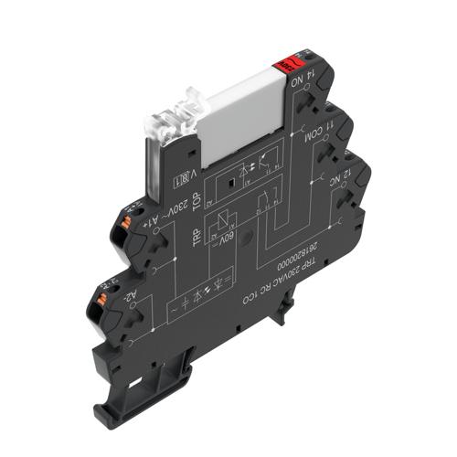 1 CO contact Contact material: AgSnO Unique multi-voltage input from 24 to 230 V UC Input voltages from 5 V DC to 230 V UC with coloured marking: AC: red, DC: blue, UC: white