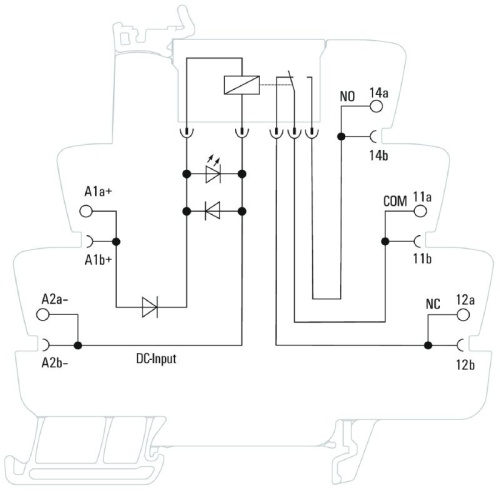 1 CO contact Contact material: AgNi 5µm Au Unique multi-voltage input from 24 to 230 V UC Input voltages from 5 V DC to 230 V UC with coloured marking: AC: red, DC: blue, UC: white