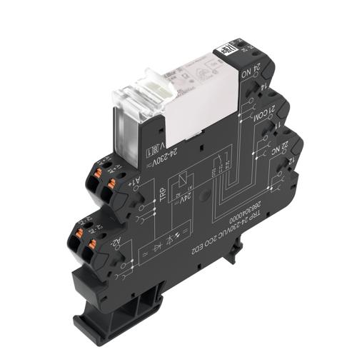 1 CO contact Contact material: AgNi Unique multi-voltage input from 24 to 230 V UC Input voltages from 5 V DC to 230 V UC with coloured marking: AC: red, DC: blue, UC: white