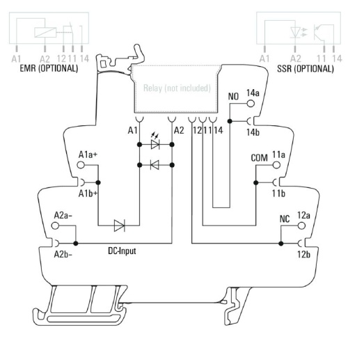 TERMSERIES empty sockets with: 1 CO contact Unique multi-voltage input from 24 to 230 V UC Input voltages with coloured marking: DC: blue, UC: white Due to high-quality design and no sharp edges no risk of injuries during installation Partition plates for optical separation and reinforcement of insulation