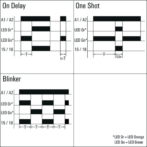 Integration of additional timing functions in 6 mm TERMSERIES version Standard-compliant timing relays according to EN 61812 Simple setting of timing functions and time ranges Integrated status LED (duo-LED in the ejection lever) for power supply and switching status