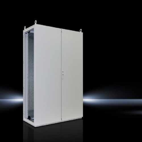 Rittal 8245500 TS8 Modular Enclosure Bay 55"H x 47"W x 20"D Nema 12 Steel Gray 2 door includes enclosure frame with door(s), roof plate, gland plate, rear panel, mounting plate, 4 eyebolts, and 3mm double-bit lock