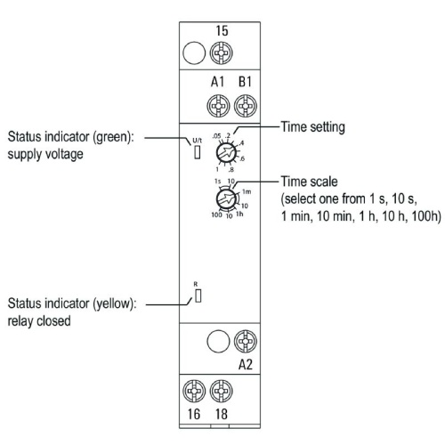 The timing functions and time ranges can be easily configured using a rotary switch fitted on the front.