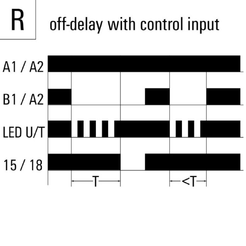 Four of these carry out individual functions: clock generator (pause and pulse start), star-delta switch, switch-on delay and off-delay with control input.