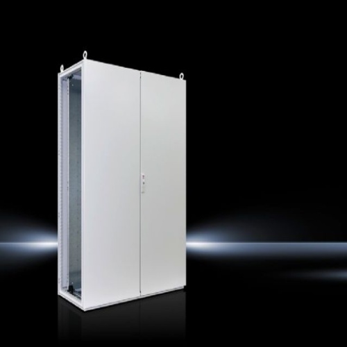 Rittal 8265500 Modular Enclosure Bay 63"H x 47"W x 20"D Nema 12 Steel Gray 2 door includes enclosure frame with door(s), roof plate, gland plate, rear panel, mounting plate, 4 eyebolts, and 3mm double-bit lock