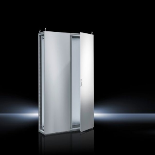 Rittal 8285500 Modular Enclosure Bay 71"H x 47"W x 20"D Nema 12 Steel Gray 2 door includes enclosure frame with door(s), roof plate, gland plate, rear panel, mounting plate, 4 eyebolts, and 3mm double-bit lock