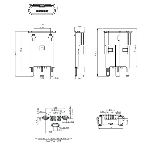 Weidmuller 2762070000 - USB Jack - Black - IP20 - 5 Pole - Phosphorus Bronze - 0.65 mm Pitch (MUST BUY IN PACKS OF 2000)