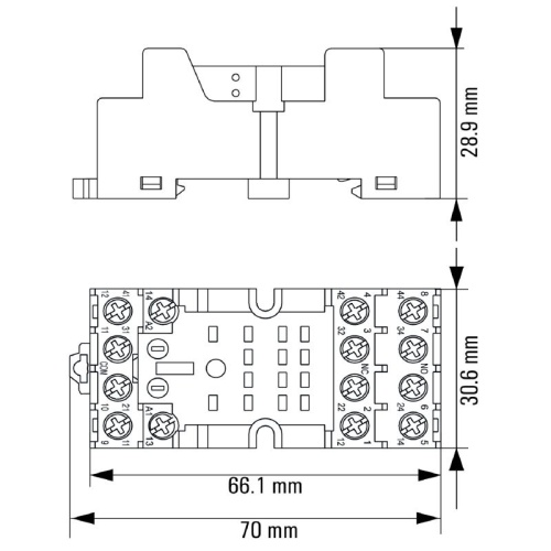 Relay sockets for the D-SERIES DRM relays 2 and 4 CO contacts Screw and PUSH IN connection Standard and low heights