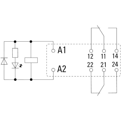 Individual relays within the RIDERSERIES RCI 2 CO contacts DC coils With integrated status LED, free-wheeling diode and test button
