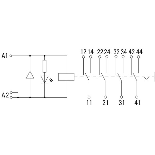 Mounted kit consisting relay, socket and retaining clip 100 % function tested 100 % check of the dielectric strenght between input - output 4 CO contacts Test button with mechanical status indicator Bright status LED (AC coil: red / DC coil: green) Identification of coils (AC red / DC blue)