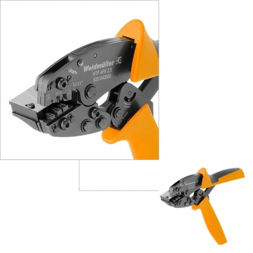 Crimping tools for for turned/stamped contact Ratchet guarantees precise crimping Release option in the event of incorrect operation With stop for exact positioning of the contacts.