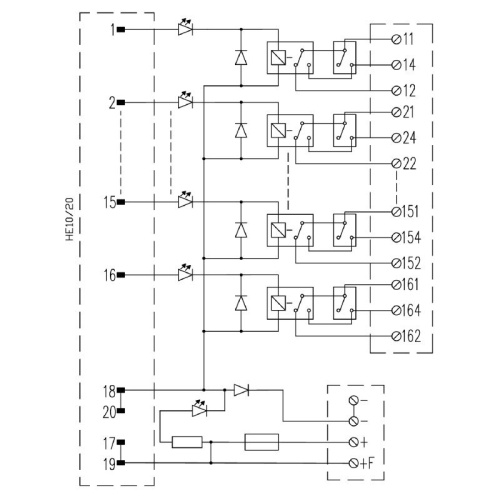 Digital output interface per-relay for electrical signal transmission between the PLC and the field.