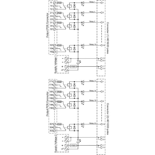 Digital output interface per-relay for electrical signal transmission between the PLC and the field.
