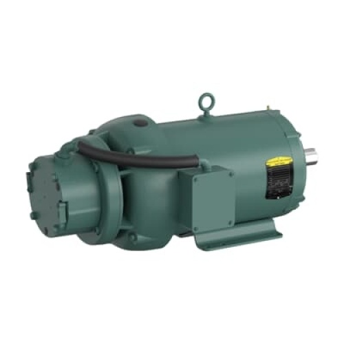 A fast-acting DC brake with an internal rectifier quickly stops the motor by converting AC power to DC to engage the brake without external components.