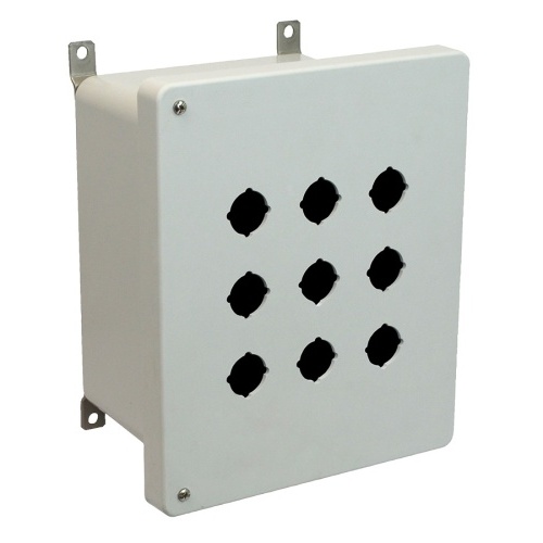 Allied Moulded AM1086HP9 ULTRAGUARD Fiberglass reinforced polyester Type 4x Push Button Enclosureto protect electronic and electrical controls, components and instruments in outdoor and indoor applications. Non-corrosive and non-conductive is lightweight and easy to modify. Rigid design compression molded SMC box and Cover ideal for extreme temperature and corrosive environments.