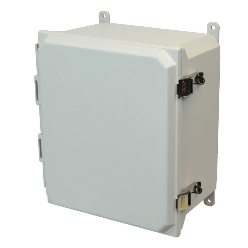 Allied Moulded AM1206L ULTRAGUARD Fiberglass reinforced polyester Type 4x Junction Box Enclosure 12" x 10" x 6" (HXWXD) Inside Dimension. Opaque cover hinged with lockable clamp latch. 316 Stainless Steel hinge, latch, external hardware and plated carbon steel internal hardware.