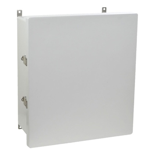 Allied Moulded AM1868L ULTRAGUARD Fiberglass reinforced polyester Type 4x Junction Box Enclosure 18" x 16" x 8" (HXWXD) Inside Dimension. Opaque cover hinged with lockable clamp latch. 316 Stainless Steel hinge, latch, external hardware and plated carbon steel internal hardware.