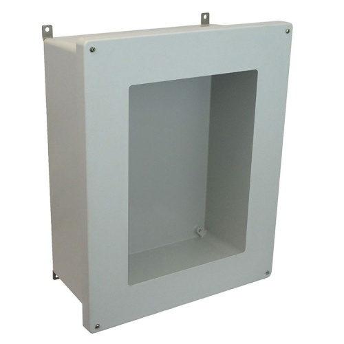 Allied Moulded AM2068W ULTRAGUARD Fiberglass reinforced polyester Type 4x Window Junction Box Enclosure 20" x 16" x 8" (HXWXD) Inside Dimension. Bonded clear polycarbonate cover with lift off 4 screw cover. 316 Stainless Steel external hardware and plated carbon steel internal hardware.