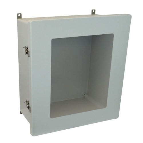 Allied Moulded AM1868TW ULTRAGUARD Fiberglass reinforced polyester Type 4x Window Junction Box Enclosure 18" x 16" x 8" (HXWXD) Inside Dimension. Bonded clear polycarbonate cover hinged with lockable twist latch. 316 Stainless Steel hinge, latch, external hardware and plated carbon steel internal hardware.