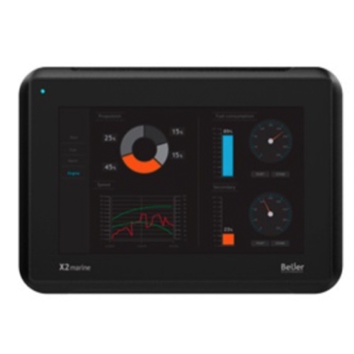 Beijer 630002505 X2 marine 7 Graphic, resistive touch, aluminum, panel mount,operator terminal. 800x480 pixels (16:9), LED backlit 7" TFT-LCD color display, 500 cd/m² marine dimmable, 1 GHz single Cortex-A9 CPU, 512 MB RAM, 2 GB MLC NAND flash, 1x Ethernet, 1x3 serial ports, 1x USB 2.0, 1x SD, 24 VDC power supply, -15 to 55 C operating temperature, IP65, CE, FCC, KCC, NEMA 4x/12, UL Type 4x/12 approvals plus DNV, KR, GL, LR, ABS, CCS, EN60945 marine approvals. Includes iX Runtime. WEC2013 Entry. Black, Beijer-branded front.