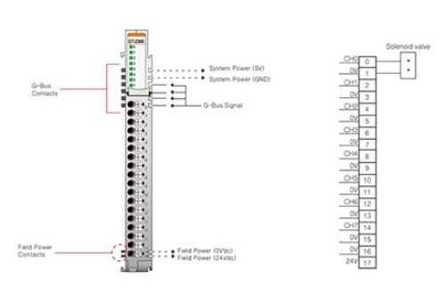 GT-2368 - 8 digital output, 24VDC/0.5A, source, with 0V terminal for 2-wire actuators, cage clamp, 18pt removable terminal