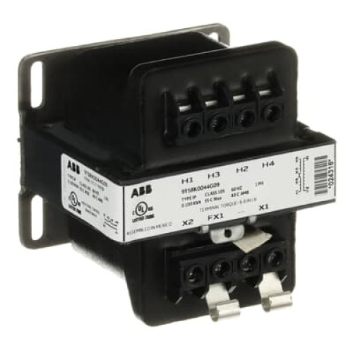 ABB 9T58K0044G09 - ABB's Type IP transformers are versatile core and coil units designed for machine tools, industrial control, panelboard, and general-purpose applications. They feature welded cores and epoxy encapsulation for superior electrical performance and protection against external elements. Type IP units conform to NEMA ST20 standards, with various insulation classes and frequency options. They offer voltage regulation, multiple secondary connection possibilities, and optional integral fusing. These transformers are compact and designed for easy installation, often fitting competitor mounting footprints. Please consult your local GE Sales Office for detailed technical information.