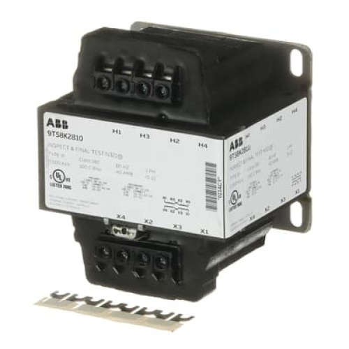 ABB 9T58K2810 - ABB's Type IP transformers are versatile core and coil units designed for machine tools, industrial control, panelboard, and general-purpose applications. They feature welded cores and epoxy encapsulation for superior electrical performance and protection against external elements. Type IP units conform to NEMA ST20 standards, with various insulation classes and frequency options. They offer voltage regulation, multiple secondary connection possibilities, and optional integral fusing. These transformers are compact and designed for easy installation, often fitting competitor mounting footprints. Please consult your local GE Sales Office for detailed technical information.