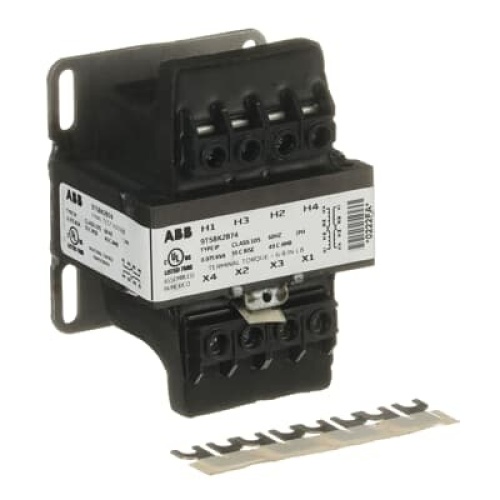 ABB 9T58K2874 - ABB's Type IP transformers are versatile core and coil units designed for machine tools, industrial control, panelboard, and general-purpose applications. They feature welded cores and epoxy encapsulation for superior electrical performance and protection against external elements. Type IP units conform to NEMA ST20 standards, with various insulation classes and frequency options. They offer voltage regulation, multiple secondary connection possibilities, and optional integral fusing. These transformers are compact and designed for easy installation, often fitting competitor mounting footprints. Please consult your local GE Sales Office for detailed technical information.