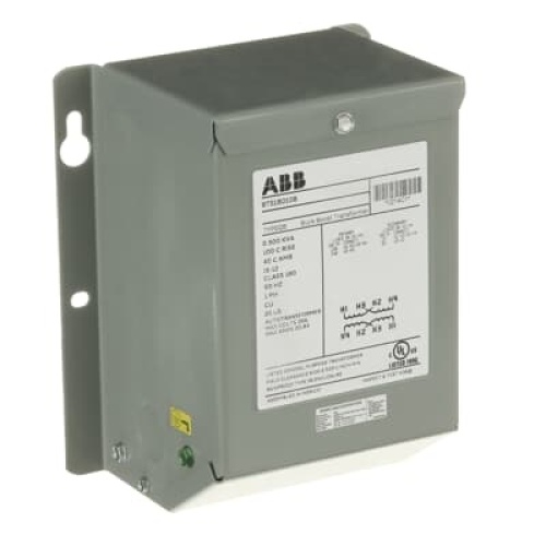 ABB 9T51B0108 - ABB's General Purpose Transformers in Enclosures offer dependable and quiet transformer operation for a range of applications. These dry-type transformers, up to 1,000 kVA, are UL listed per Standard 506 and 1561, meeting the requirements of NEMA ST-20, 1992. Models Type QB, QMS, and QMS 3 are also C-UL listed. Designed for general-purpose use, they are rated up to 600 Volts, making them suitable for appliance, lighting, and power loads from electrical distribution systems. Standard distribution voltages include 600, 480, and 240 Volts, while load voltages range from 480 to 120 Volts. These transformers eliminate the need for costly low-voltage feeders by providing the correct voltage right at the load, all without requiring vaults for installation. Construction for Types QB, QMS, and QMS 3 involves NEMA 3R nonventilated weatherproof enclosures, with encapsulated core and coils for added durability.
