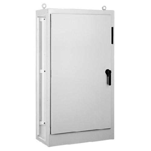 Delivery: Frame with fitted doors, rear panel, roof panel, bottom plates, mounting plate and door frame. Delivery also includes earthing bolts. Delivered on a pallet which is identical to the width of the enclosure to allow baying without removal. All packing material is recyclable.