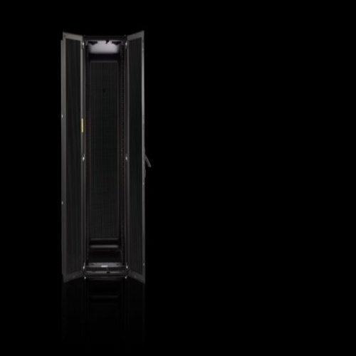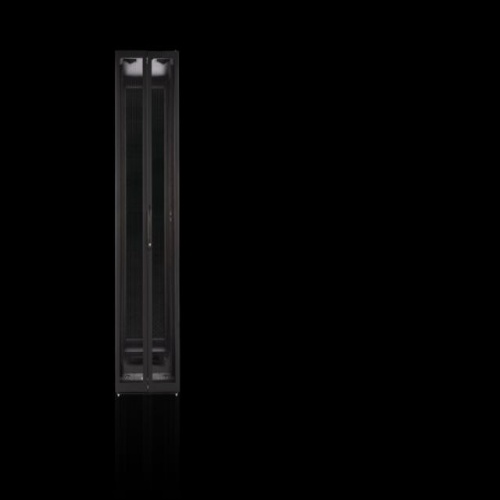 Rittal 9982218 - Includes: Perforated single steel door at the front (surface area approx. 85% perforated) 130° quick release internal hinges, Perforated steel door at the rear vertically divided (surface area approx. 85% perforated) 130° quick release internal hinges, Enclosure frame TS 8 with doors and roof plate, Front and rear comfort handles with push button keyed door lock, Installed caster kits, Leveling Feet, Baying Brackets (4 X 24" and 4 X 600mm), M6 cage nuts (Package of 50), M6 mounting screws (Package of 50), Two moveable cable management walls with dual PDU mounting and cable manager cutouts, Two sets of split (horizontal) side panel including matching key set for door locks