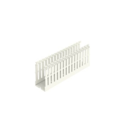Panduit F1.5X2WH6 The F1.5X2WH6 Panduct Lead-Free PVC Narrow Slot Wiring Duct features a narrow slot/finger design that closely matches the spacing of high-density components. Upper and lower scorelines allow for easy finger/sidewall section removal. UL 94 flame class of