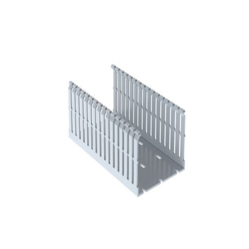 Panduit F4X3LG6 The F4X3LG6 Panduct Lead-Free PVC Narrow Slot Wiring Duct features a narrow slot/finger design that closely matches the spacing of high-density components. Upper and lower scorelines allow for easy finger/sidewall section removal. UL 94 flame class of V